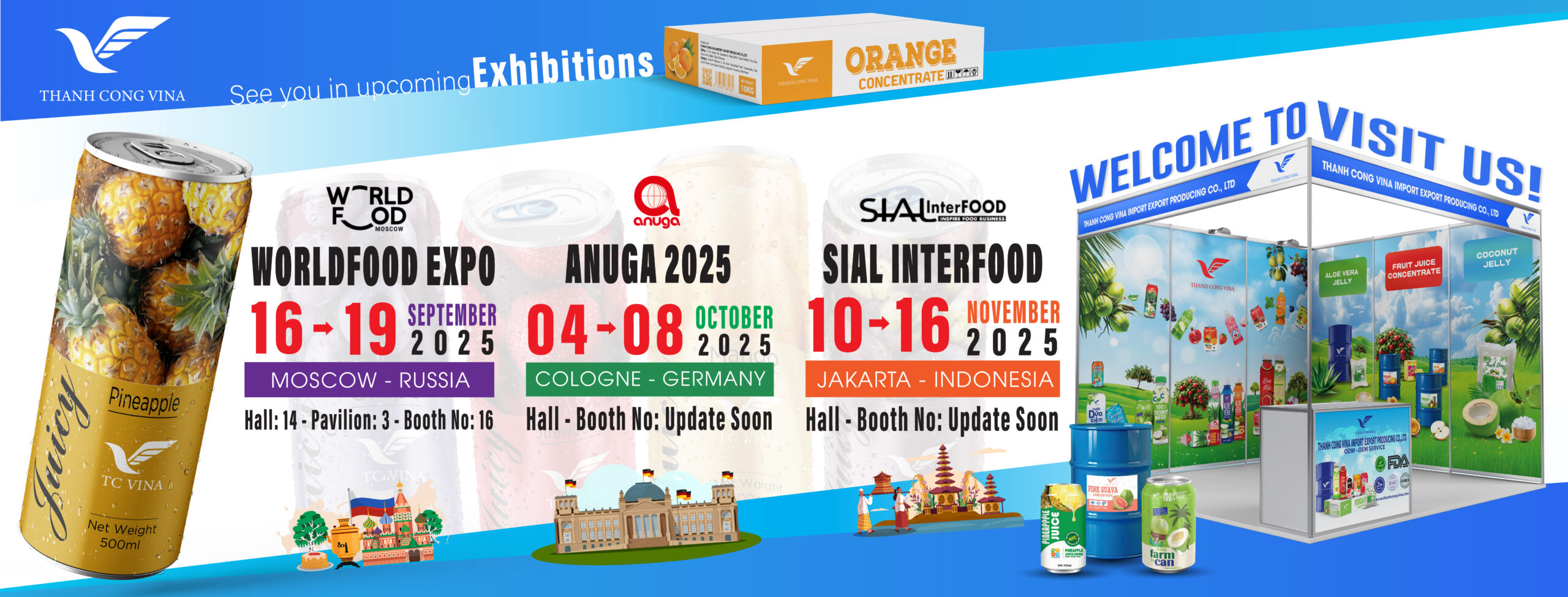 TCVINA is the leading juice and drink manufacturer and exporter in Vietnam since 2016 in Long An with hundreds of hectares of farmland covered with typical tropical fruits of Vietnam, Thanh Cong Vina specializes in producing and processing fruit foods such as kumquat, orange, pineapple, noni, aloe vera, passion fruit, etc.