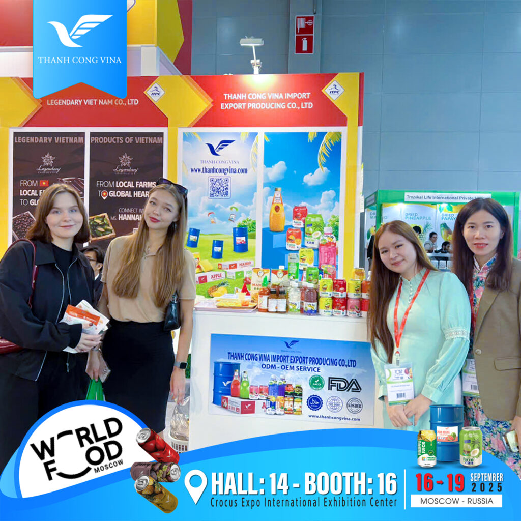 Moscow, Russia – September 2025 – Thanh Cong Vina, a trusted name in Vietnam’s beverage industry, is proud to present its latest product portfolio at WorldFood Expo 2025, one of the leading international food and beverage exhibitions. The event, hosted in Moscow, attracts thousands of industry professionals and serves as a platform for innovation, partnership, and global trade.